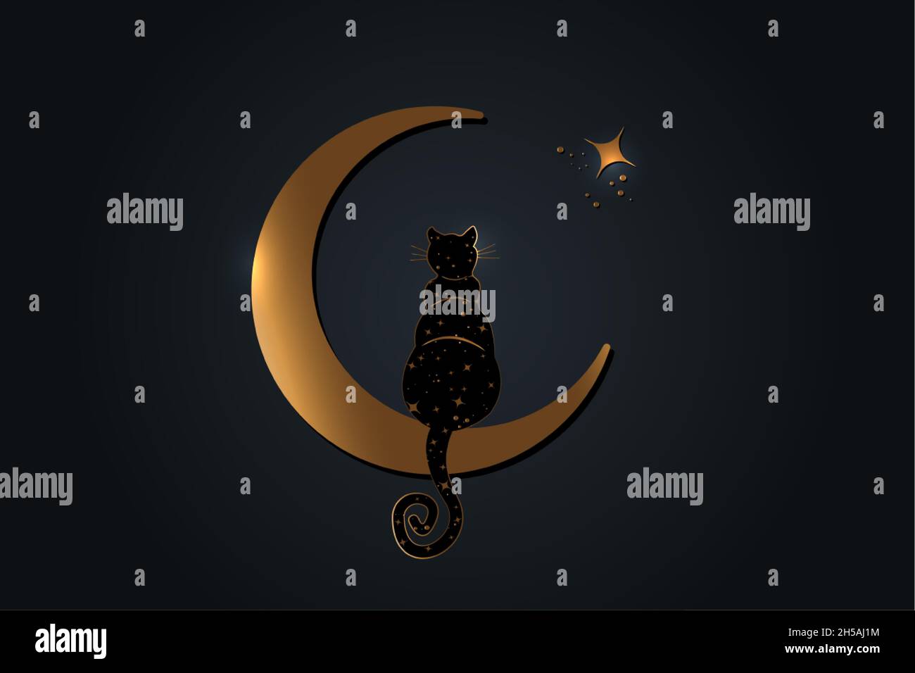 Black Cat Sitting On The Crescent Moon Look At The Stars Golden Wicca Symbol Boho Style Vector Illustration Isolated On Black Background Stock Vector Image Art Alamy