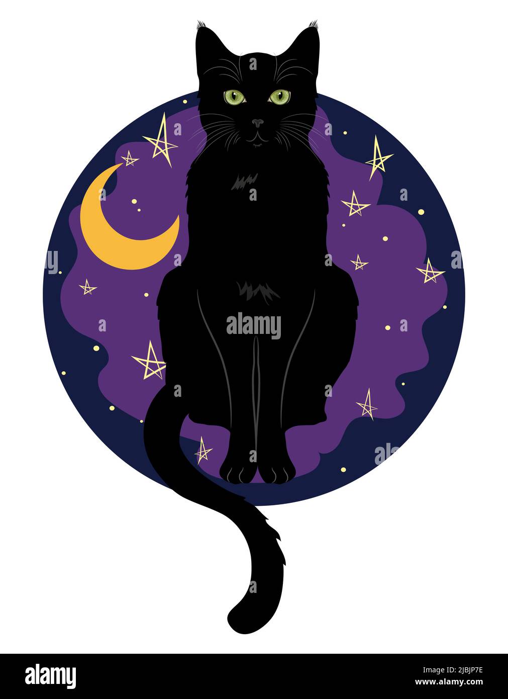 Black Green Eyed Cat Sitting On A Background Of Night Sky With Moon And Stars Stock Vector Image Art Alamy