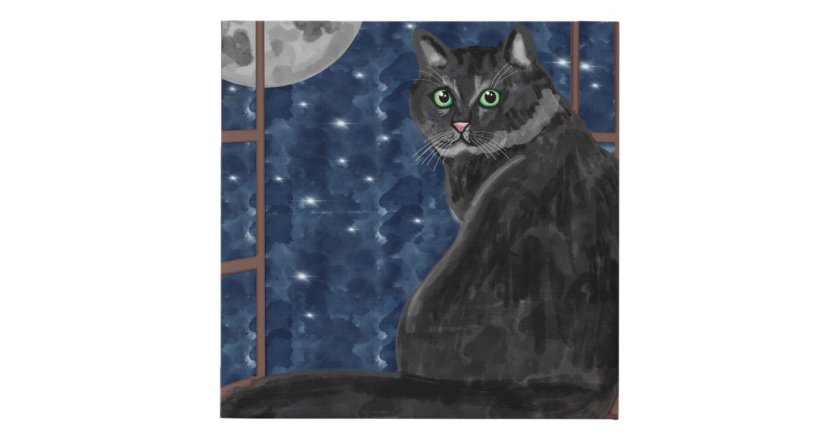 Black Cat Looking At The Moon And Stars Faux Canvas Print Zazzle