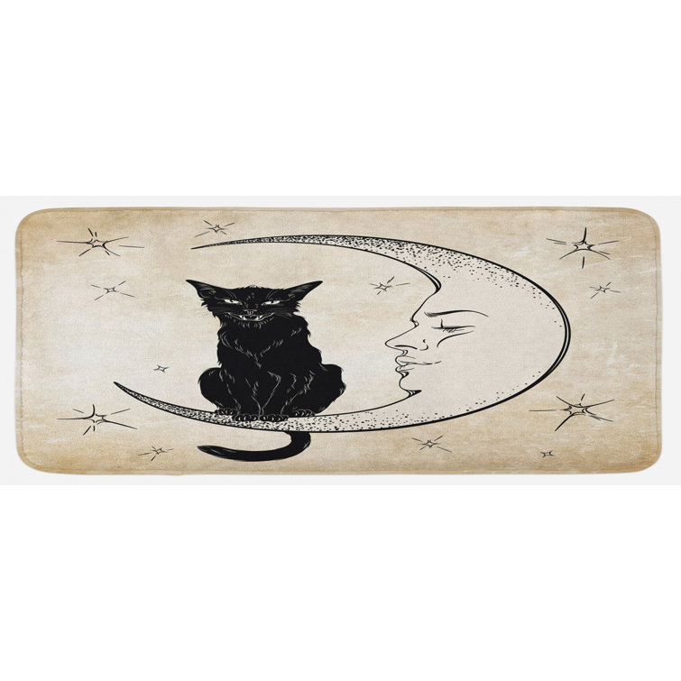 East Urban Home Black Cat Sitting On White Crescent Moon Contrasting Facial Expressions Feline Sand Brown Black Kitchen Mat Wayfair